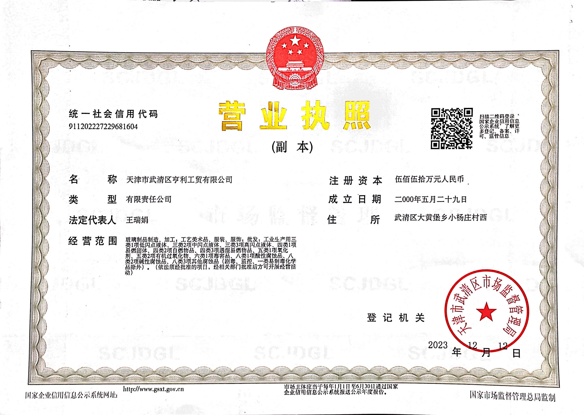 地址:天津市武清區大黃堡鎮小楊